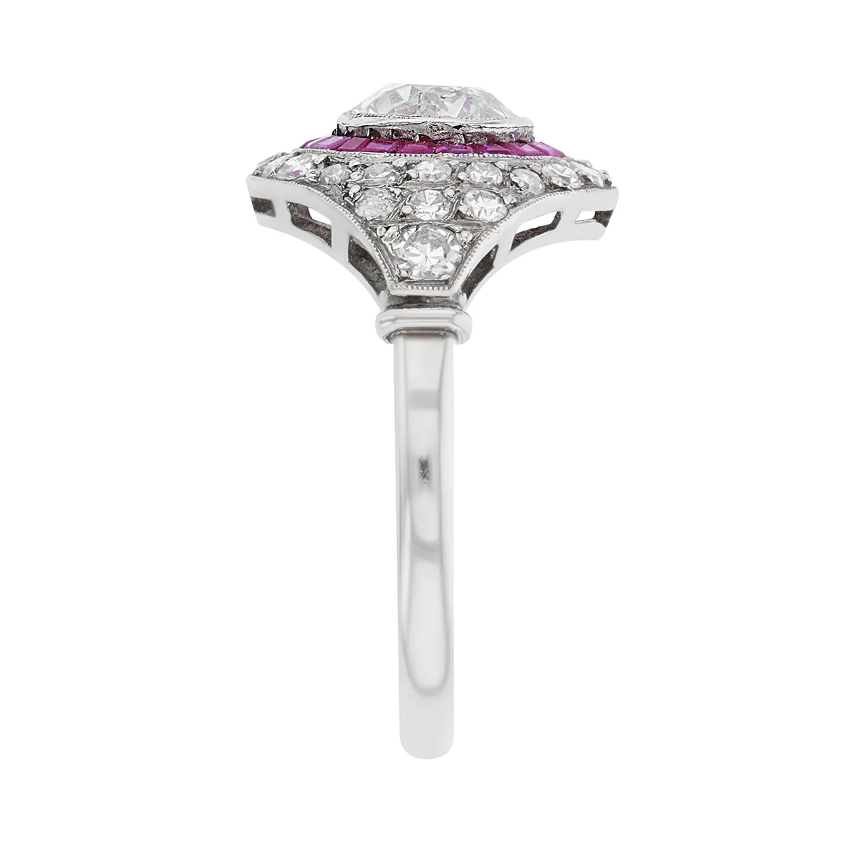 Antique 1.20ct Old Cut Diamond and Ruby Target Ring | Pre-Loved | Platinum