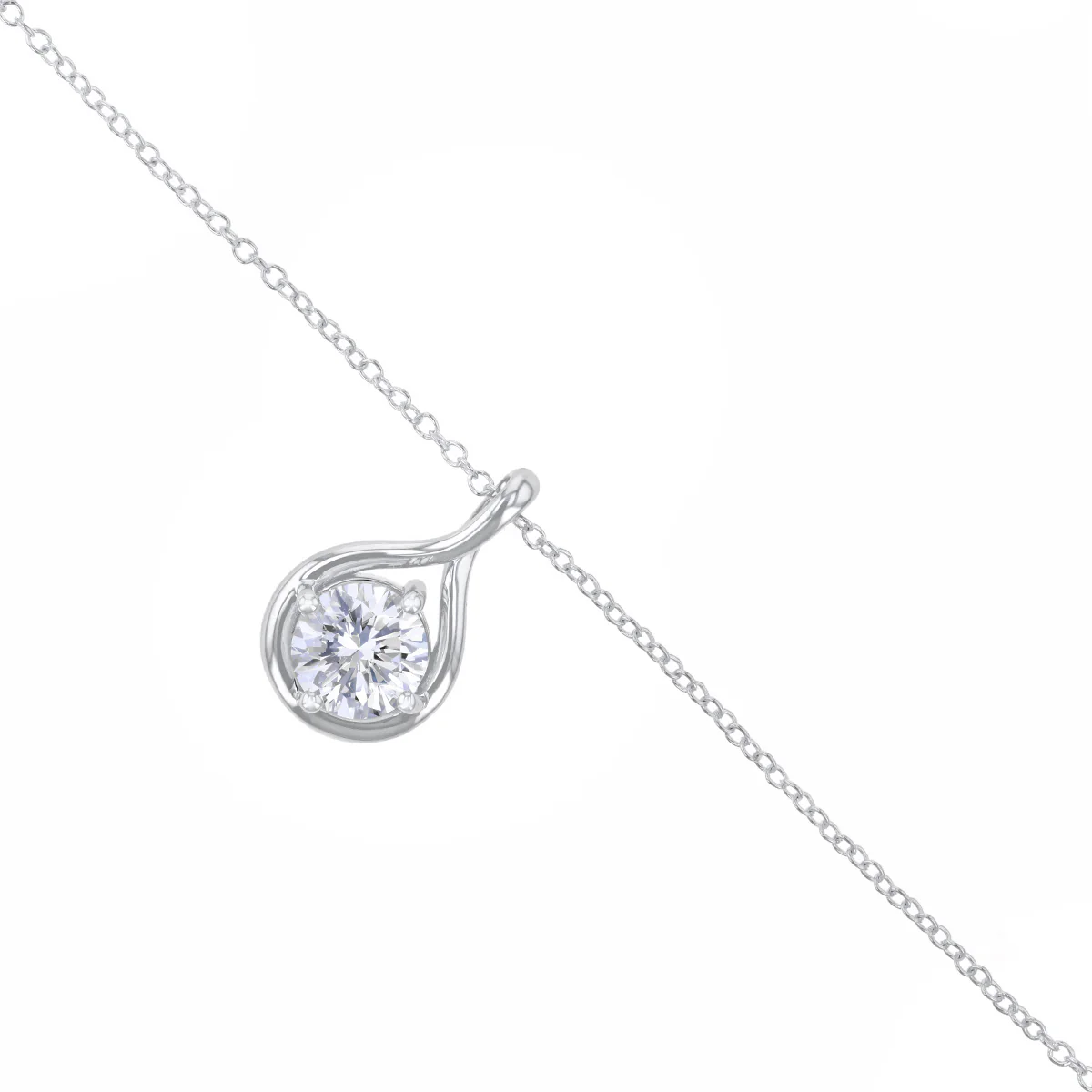 A symbol of timeless elegance, this pendant showcases a 1.00ct brilliant-cut lab-grown diamond encased in a delicate teardrop-shaped 9K white gold setting. The D/E colour and VS1 clarity of the diamond ensure unmatched sparkle and sophistication. Suspended from an 18" chain, this graceful design is both modern and classic, making it perfect for any occasion.