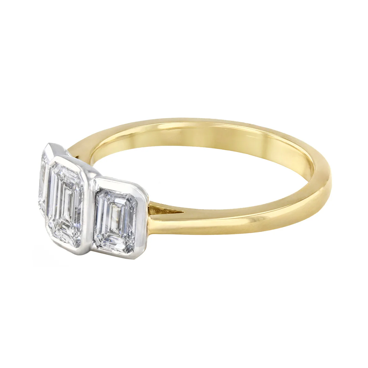 Everyday Diamonds Collection 1.60ct Lab Grown Emerald Cut Bezel Set Three Stone Ring | 9K Bi-Metal