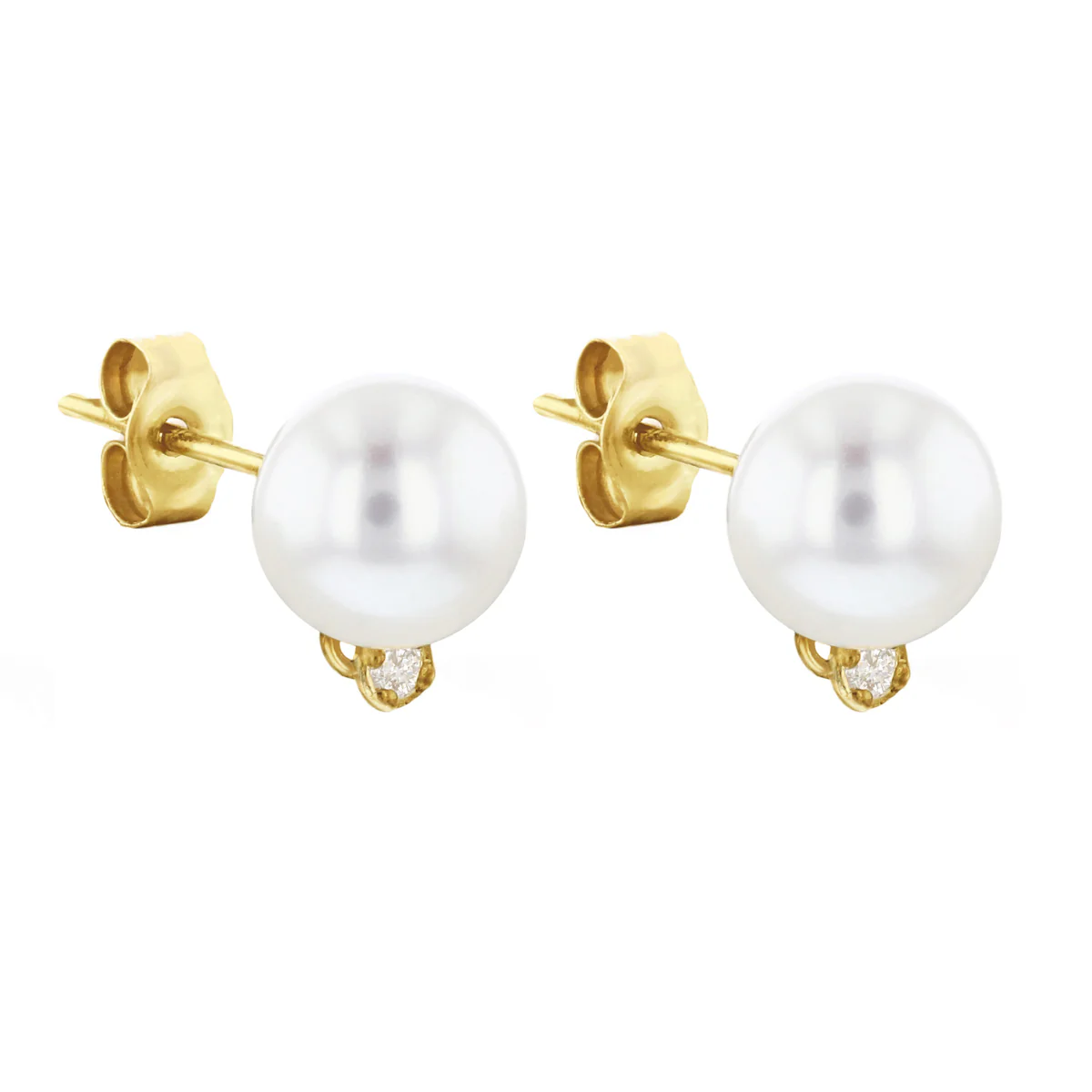 Freshwater Pearl & Diamond Stud Earrings 7mm | 9K Yellow Gold